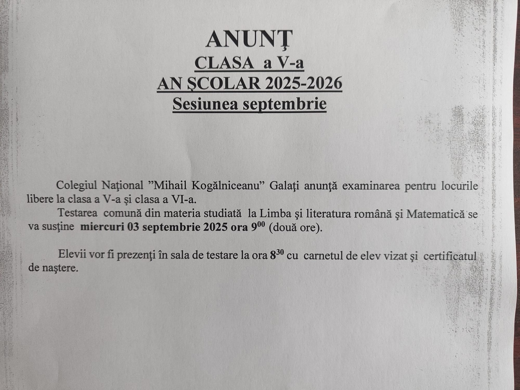 IMPORTANT: Repartizarea elevilor de la clasa a IX-a, specializare FILOLOGIE, intensiv limba engleză / limba franceză, este afișată la avizierul școlii.